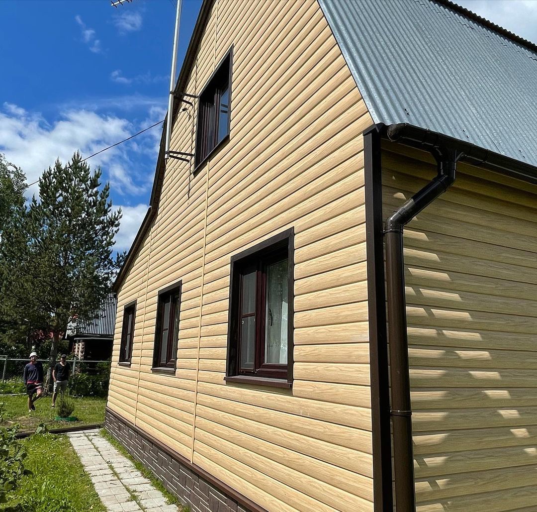 Монтаж сайдинга похож на сборку конструктора. Стена двухэтажного дома собирается в четыре руки примерно за 1–2 дня