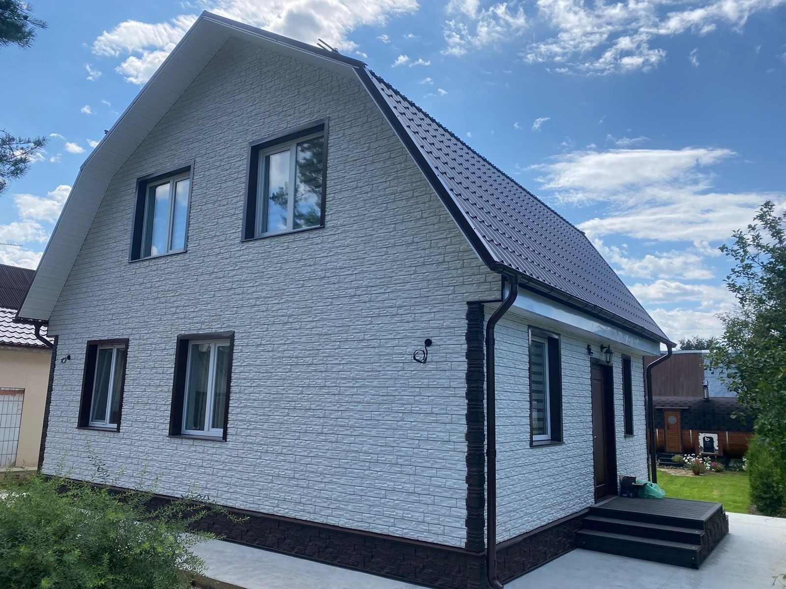 Обшили дом фиброцементными панелями. Очень довольны выбором, панели защищают от осадков и выглядят дорого, несмотря на доступную цену.
