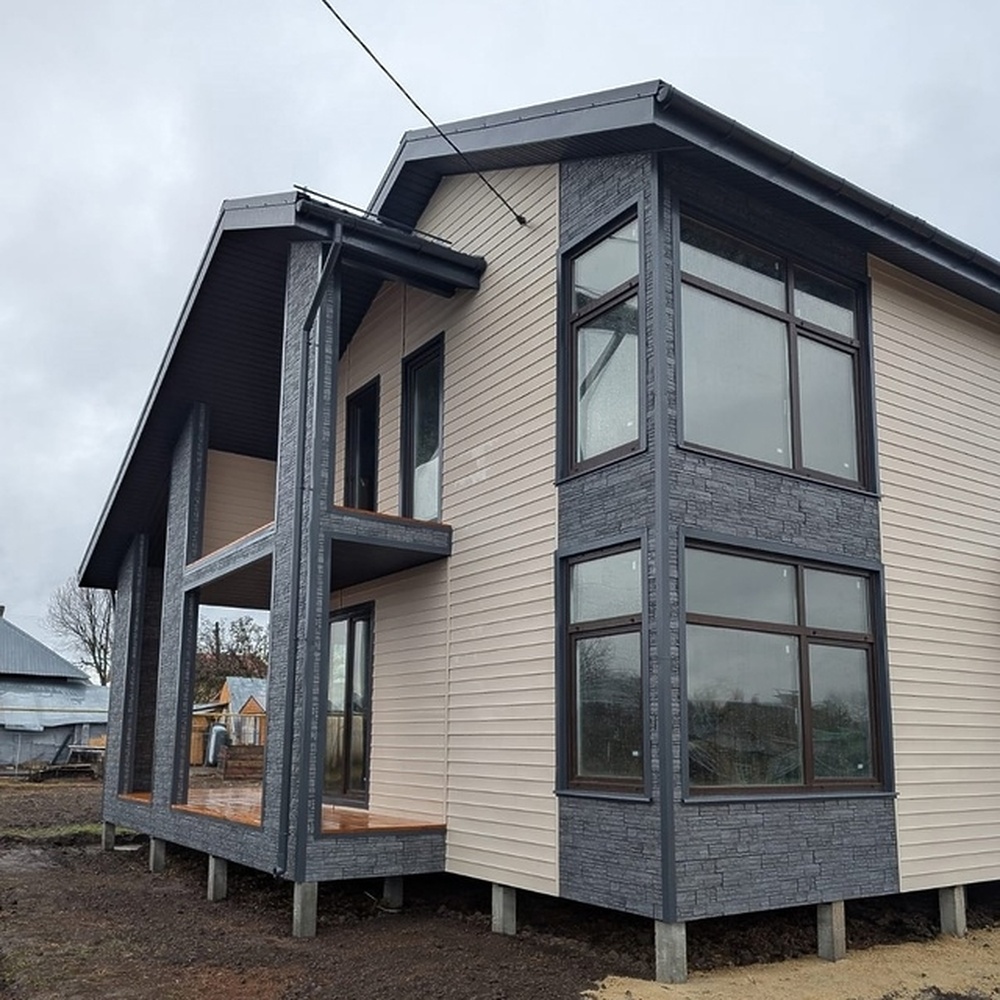 Обшили дом фиброцементными панелями. Очень довольны выбором, панели защищают от осадков и выглядят дорого, несмотря на доступную цену.